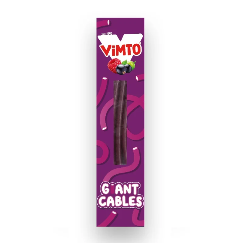 Everyone loves the fruitiness of Vimto drinks, and you can now have even more of that great taste with these giant cables. With a creamy fondant filling wrapped in the signature berry flavour, these candy cables are a brilliant treat. Combine their juicy Vimto flavour and the sheer size of them, at 75cm long, they’re a novelty treat with huge appeal!